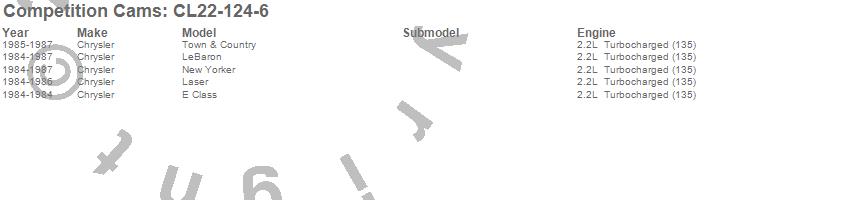 Competition Cams - Turbo Camshaft/Lifter Kit P/N CL22-124-6 Features: