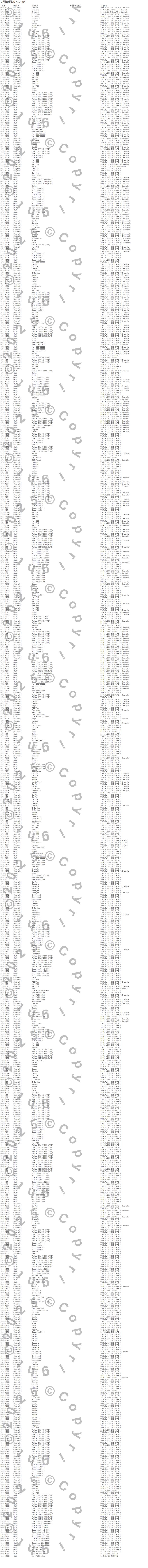 300, Bel Air, Biscayne, Blazer, Brookwood, C10 Pickup, C10 Suburban, C15 Suburban, C15/C1500 Suburban, C1500 Pickup, C20 Pickup, C20 Suburban, C25 Suburban, C25/C2500 Pickup, C25/C2500 Suburban, C30 Pickup, C35/C3500 Pickup, Camaro, Caprice, Chevelle
