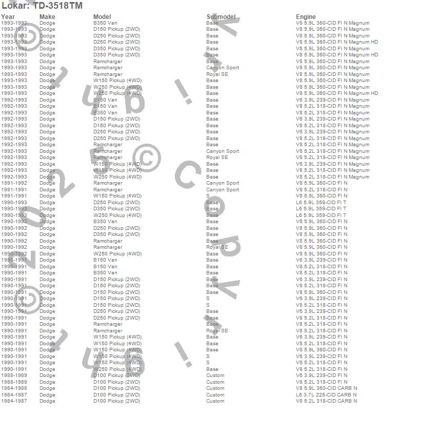 B150 Van, B350 Van, D100 Pickup, D150 Pickup, D250 Pickup, D350 Pickup, Ramcharger, W150 Pickup, W250 Pickup, Dodge, 1993, 1992, 1991, 1990, 1989, 1988, 1987, 1986, 1985, 1984