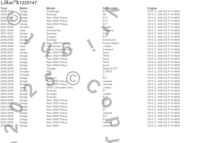 300, Aspen, Challenger, Charger, Commander, Durango, Grand Cherokee (WK), Magnum, Ram 1500, Ram 2500, Ram 3500, Chrysler, Dodge, Jeep, 2010, 2009, 2008, 2007, 2006, 2005