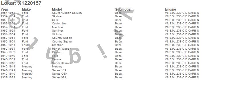Club, Country Sedan, Country Squire, Courier Sedan Delivery, Crestline, Custom, Customline, Deluxe, Ford, Mainline, Mercury, Ranch Wagon, Series 19A, Series 99A, Series O9A, Skyliner, Sunliner, Super Deluxe, Victoria, Ford