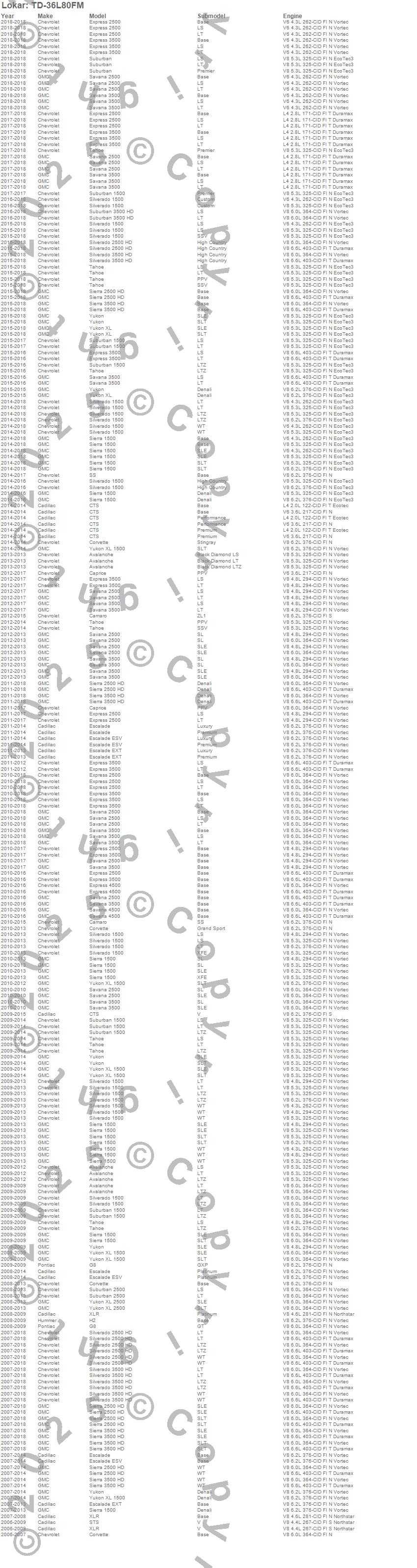 Avalanche, Camaro, Caprice, Corvette, CTS, Escalade, Escalade ESV, Escalade EXT, Express 2500, Express 3500, Express 4500, G8, H2, Savana 2500, Savana 3500, Savana 4500, Sierra 1500, Sierra 2500 HD, Sierra 3500 HD, Silverado 1500